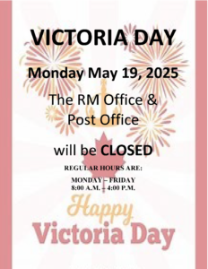 VICTORIA DAY CLOSURE By RM of Milton|2025-05-01T09:50:23-06:00May 1st, 2025|Public Notices|Comments Off on VICTORIA DAY CLOSURE The Municipal Office will be closed for the Victoria Day holiday Monday May 19. Share This Story, Choose Your Platform! FacebookXRedditLinkedInWhatsAppTumblrPinterestVkEmail